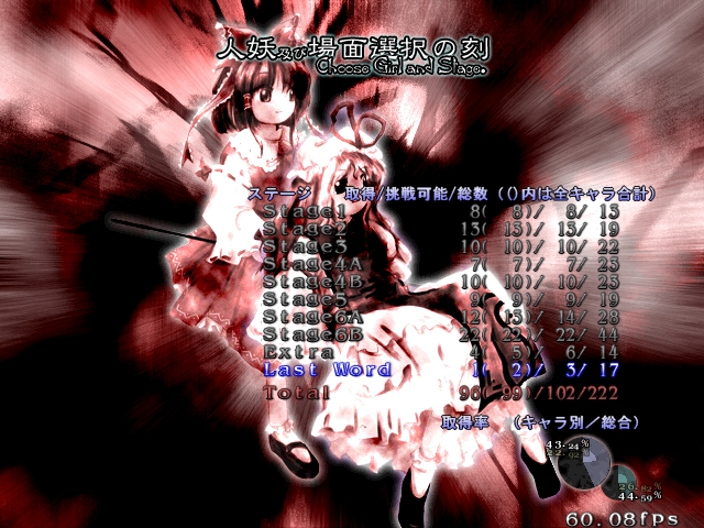 222枚中102枚がプレイ可能でそのうちの99枚がクリア済。